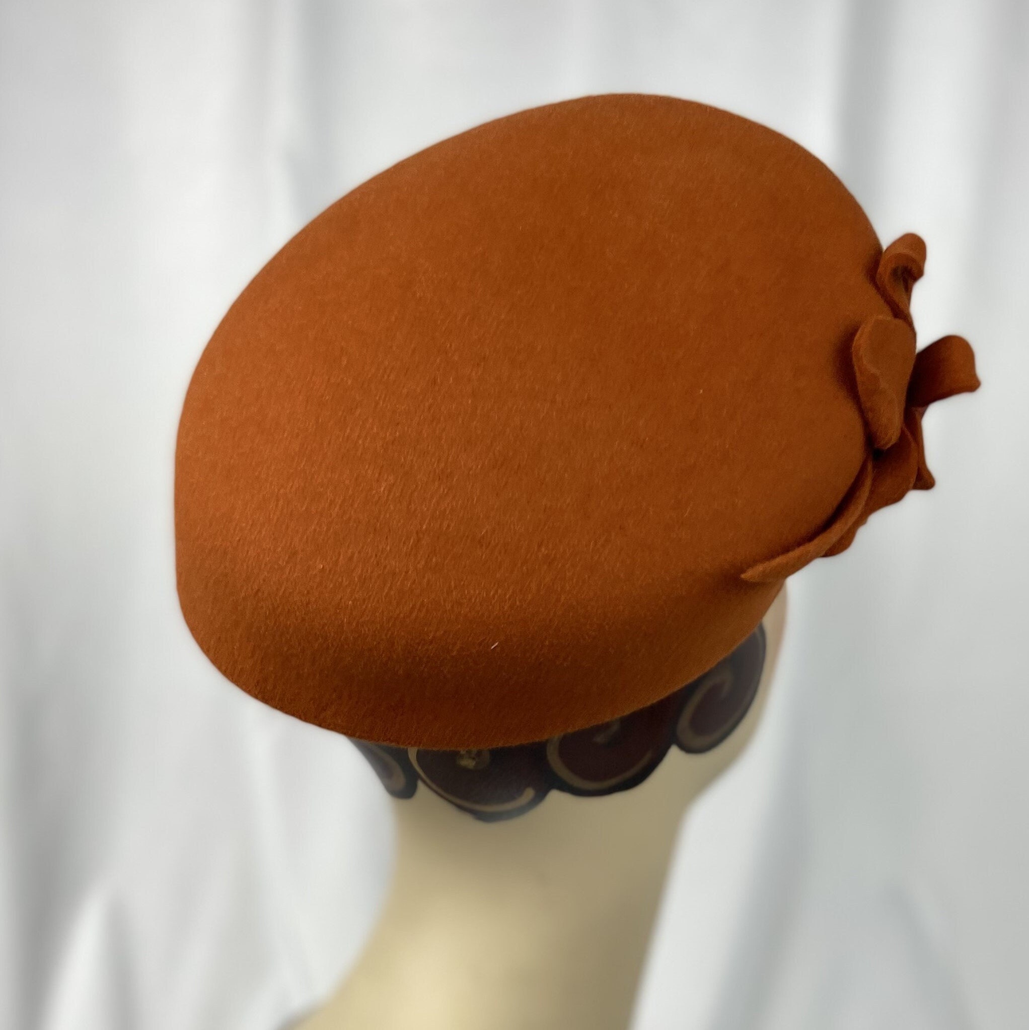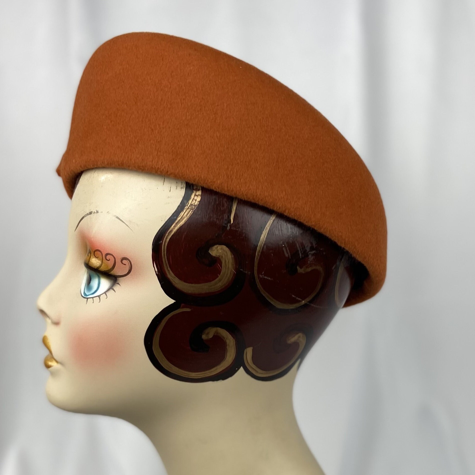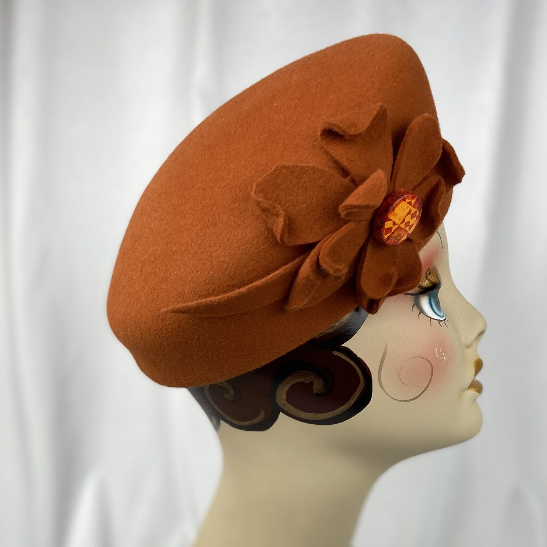Velour Felt Beret, 1960s Style, Handmade Hat, Rust