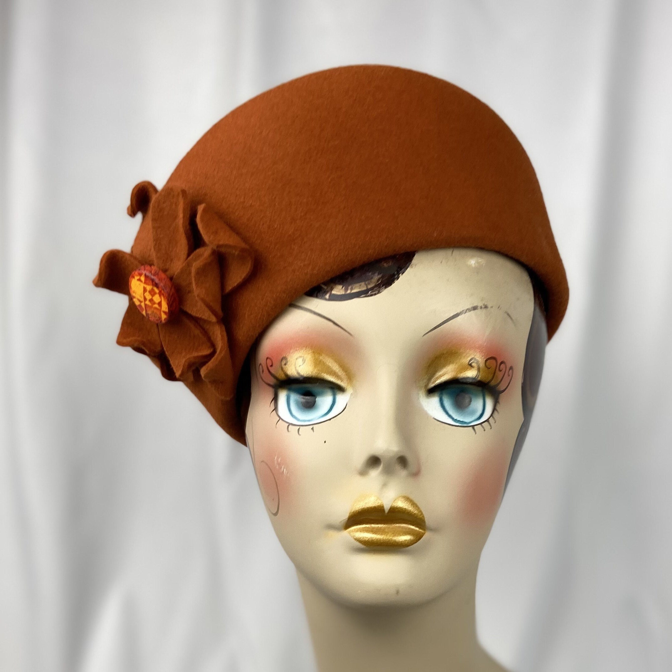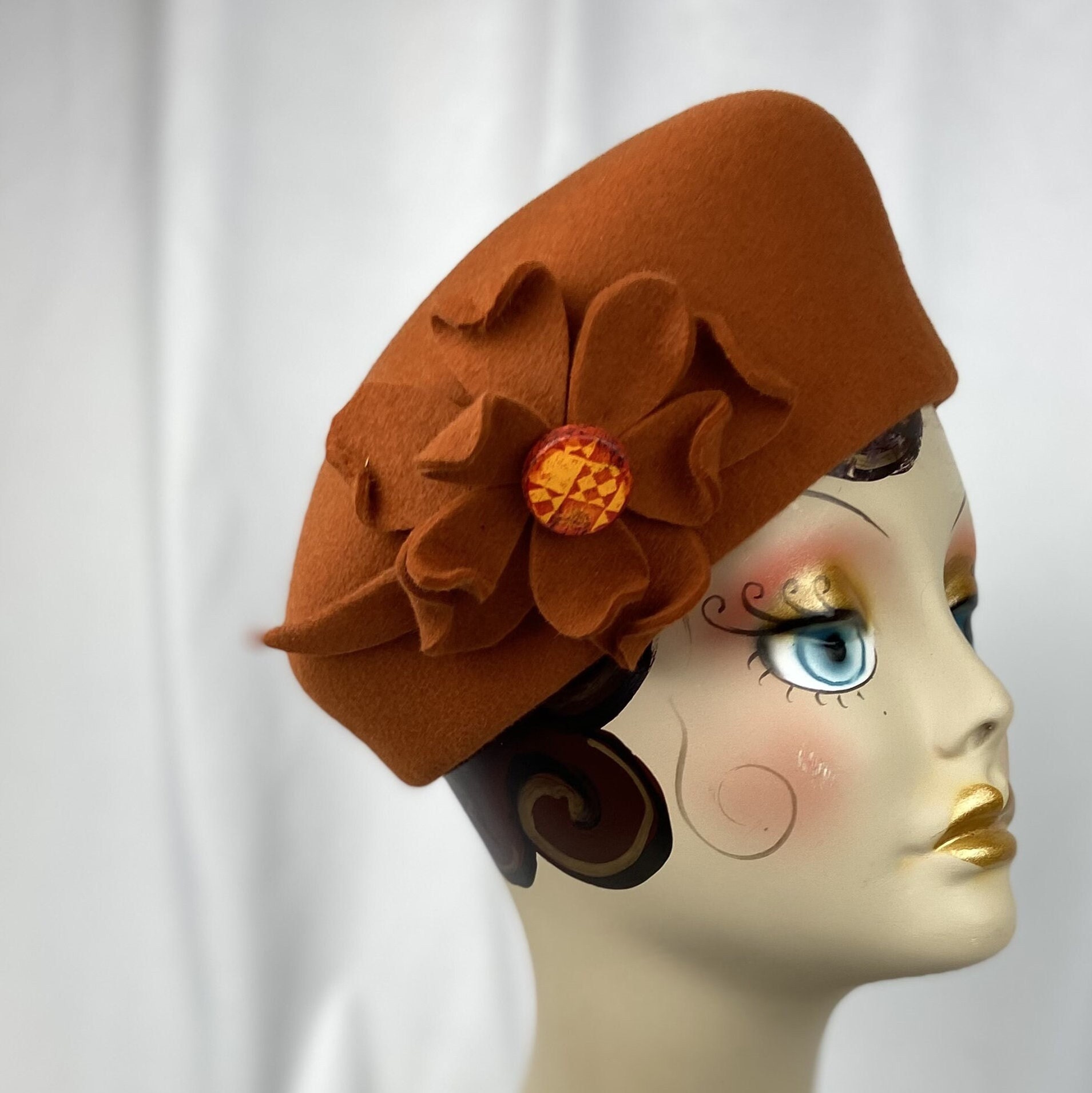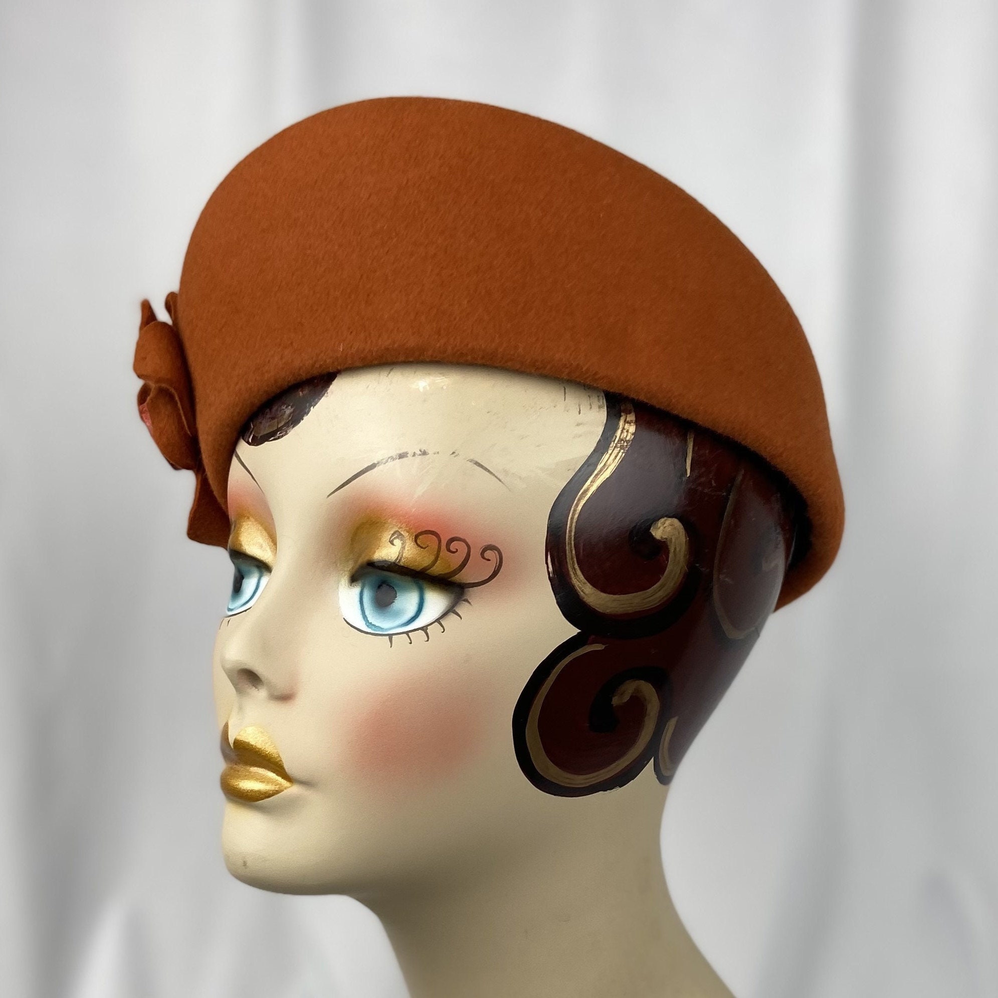 Velour Felt Beret, 1960s Style, Handmade Hat, Rust
