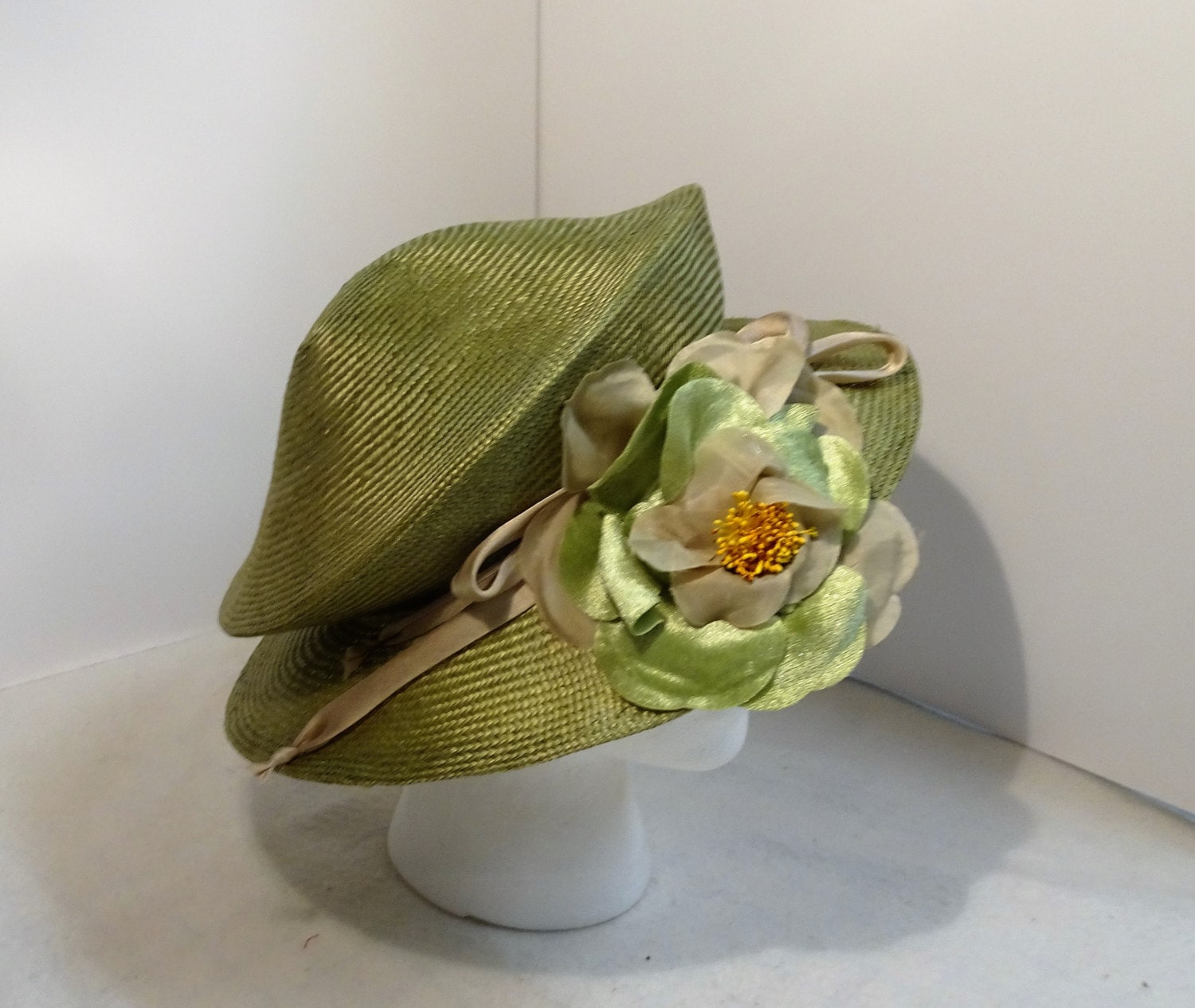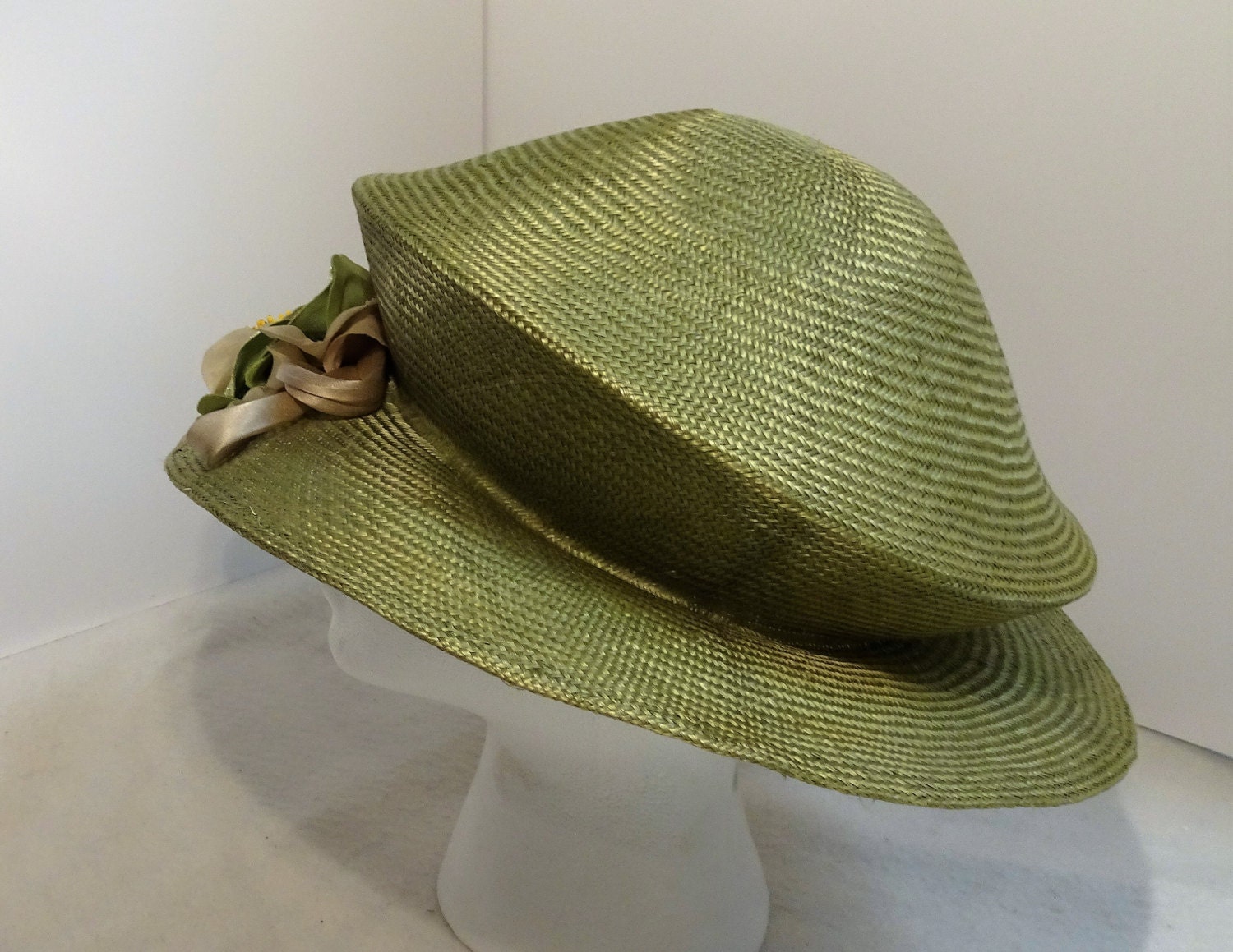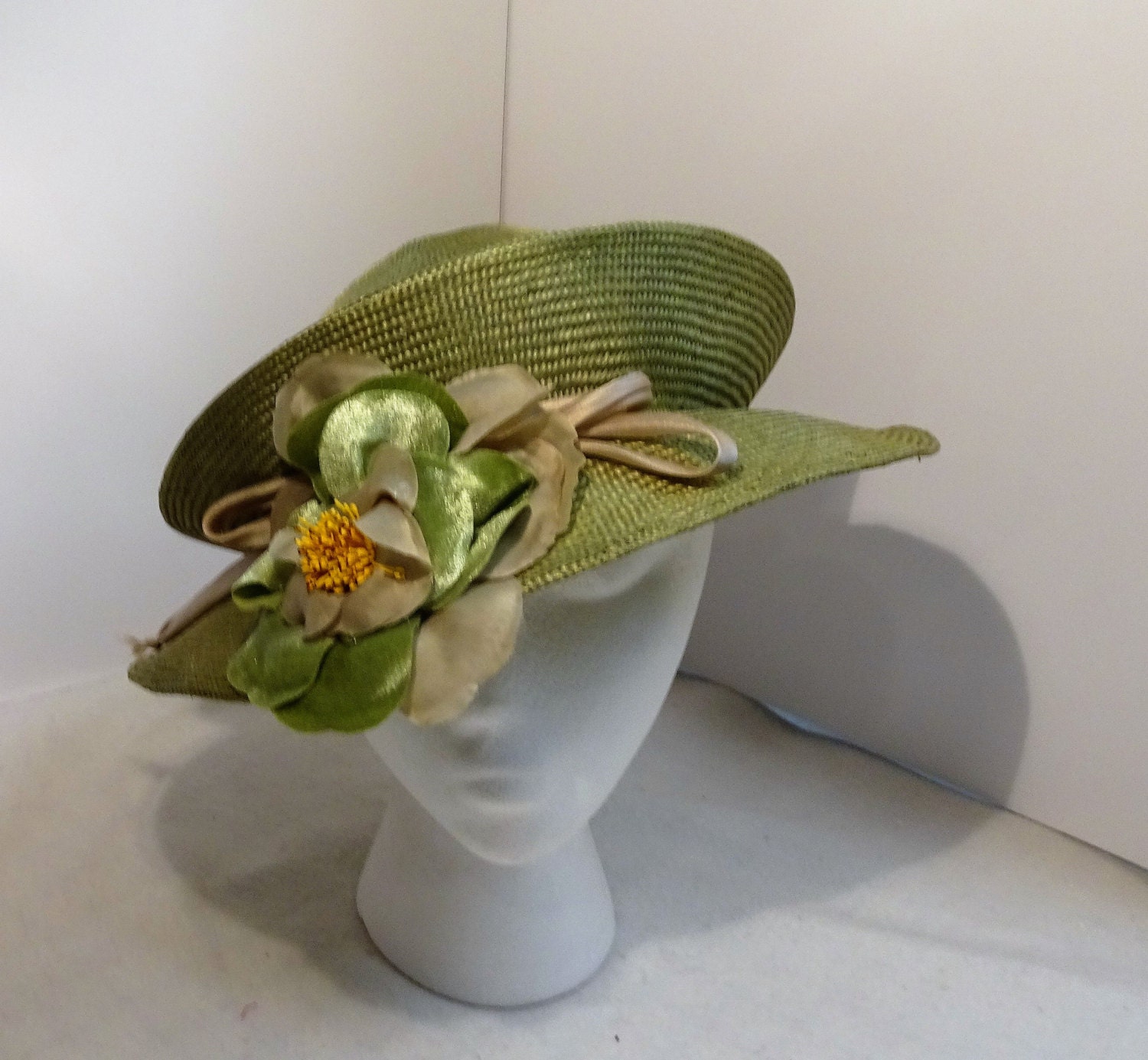 This hat is made of the finest, lightest- weight parasisal straw, hand woven in Asia. It takes 5 days for an experienced weaver to make just one "hood", which is what I buy to make the hat.